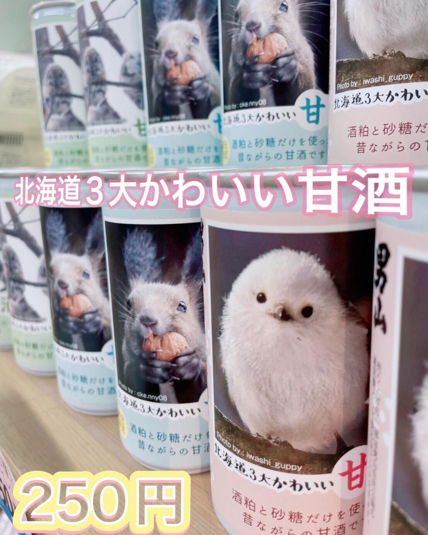 旭川の蔵元「男山」の酒粕を使った甘酒と、北海道に生息するかわいい動物の写真がコラボしました❣️190ml ¥250お土産にも大人気の商品です♫園内ではエゾモモンガとエゾリスが展示されております🐿シマエナガも運が良ければ園内で見れるか〜も…?※酒粕が入っておりますので、運転時やお子様、お酒に弱い方、妊娠、授乳期の方はご注意ください。#旭山動物園#北海道#旭山動物園くらぶ#旭川#動物#asahiyamazoo#hokkaido#北海道3大かわいい動物#男山#甘酒#シマエナガ#エゾリス#エゾモモンガ