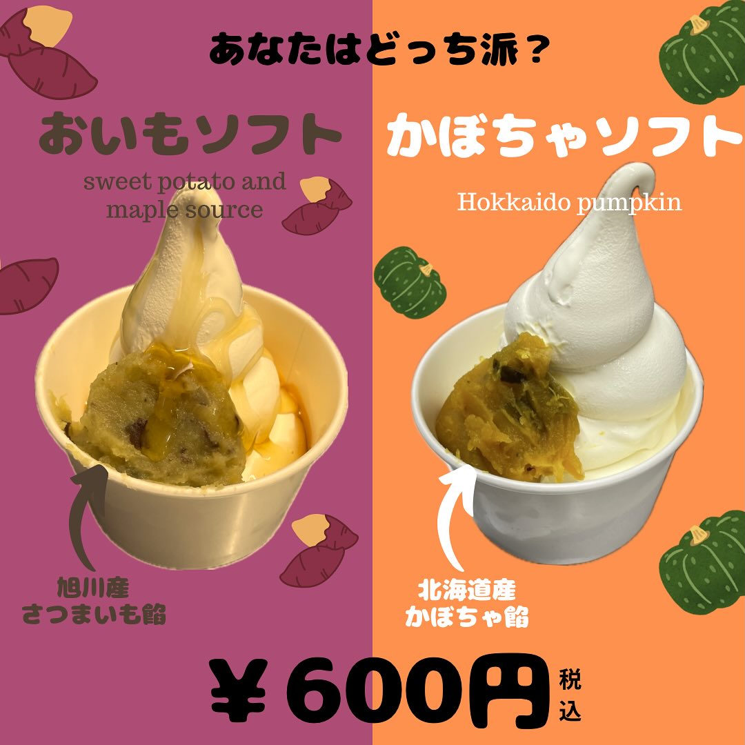 フードベースカフェトトリにて秋限定メニューはじまりました!旭川産のさつまいもを使った、おいもソフト北海道産のかぼちゃを使った、かぼちゃソフトどちらも¥600円ですあなたはどっち派??️#旭山動物園 #旭川 #北海道 #旭山 #旭山動物園くらぶ #旭山グルメ #動物園グルメ #フードベースカフェトトリ #asahiyamazoo #hokkaido #秋限定 #期間限定 #おいもソフト #かぼちゃソフト