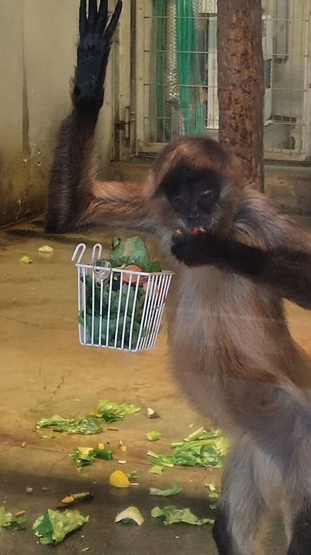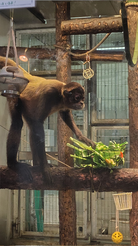 今回は『くもざる・かぴばら館』のクモザルのごはんタイムにお邪魔しました。