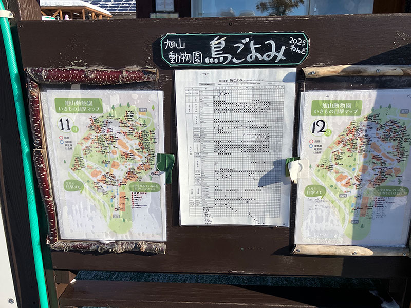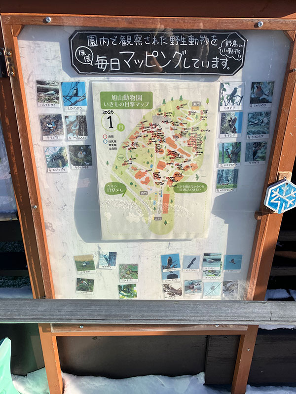 サポートセンターのところに飼育員さんが作成した、旭山動物園鳥ごよみがあり、園内で観察できた野生動物を毎日確認することができます!