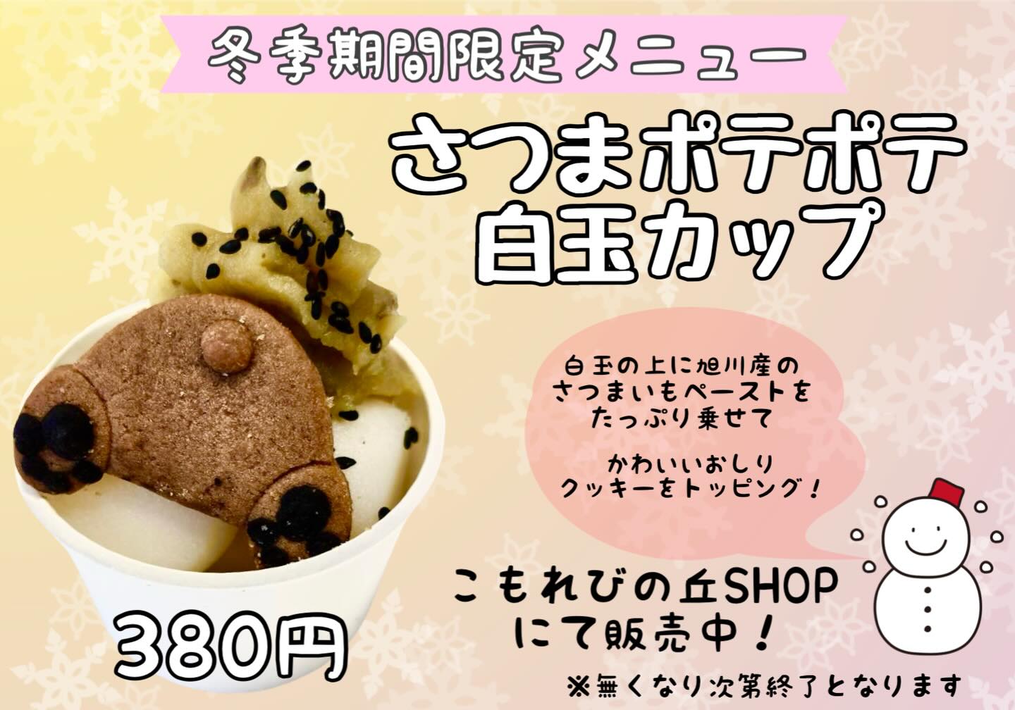 本日は、こもれびの丘SHOPにて期間限定販売中のフードメニューをご紹介致します!さつまポテポテ白玉カップ 380円(税込)ミニカップに白玉と甘ーいさつまいもペーストをたっぷり乗せて、さらにかわいいおしりクッキーをトッピングいたしました!冬季期間限定メニューとなっておりますので、旭山動物園にお立ち寄りの際にぜひお試しくださいませ♪※在庫無くなり次第販売終了となる可能性がございますのでご了承ください#旭山動物園 #動物 #旭山動物園くらぶ #スイーツ