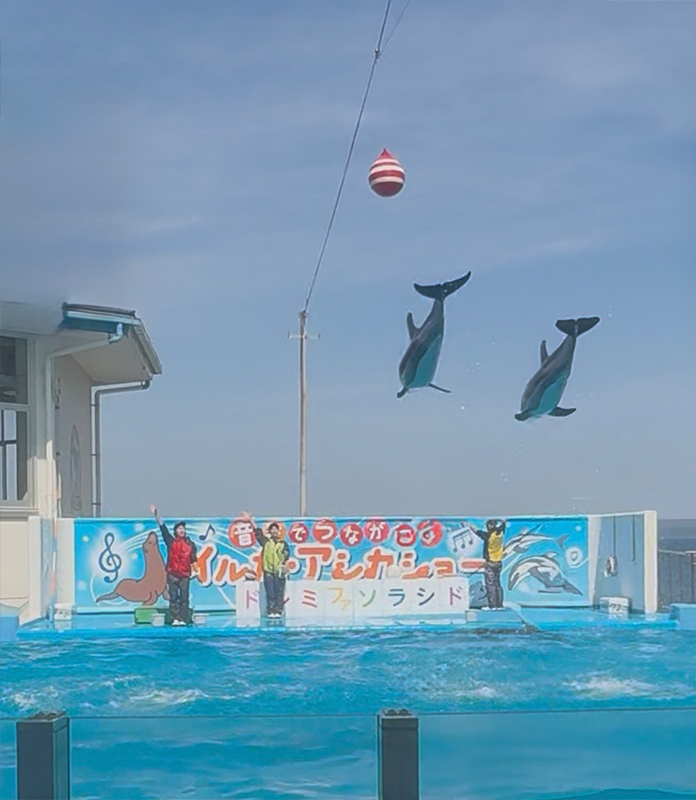 迫力満点のイルカのショーを見たり、お昼寝しているカワウソを見たり…(^^)